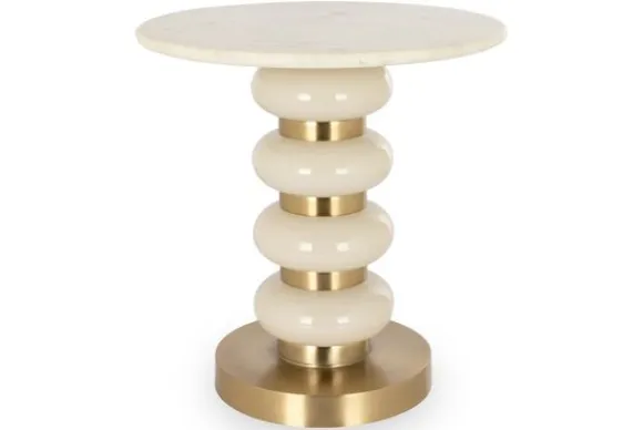 Bijzettafel Boann 212583 van het merk Richmond Interiors heeft een blad gemaakt van marmer. Marmer is een duurzame steensoort en heeft een luxe en stijlvolle uitstraling. De steensoort is een natuurproduct en kenmerkt zich door de unieke afwerkingen en kan zowel grove als gladde delen bevatten. Door de kenmerkende kleurschakeringen en aders is geen product hetzelfde. Zo haal je met een marmer product dus echt iets unieks in huis. De bollen van de poot zijn gemaakt van glas in de kleur wit in combinatie met brass (staal in mat goud).