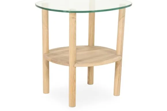 Bijzettafel Cleo Naturel 96522 van het merk Eleonora is een moderne tafel met een luchtig design. Het ronde glazen blad rust op een frame van naturel hout, wat zorgt voor een frisse en stijlvolle uitstraling. De combinatie van glas en hout maakt de tafel elegant én praktisch.