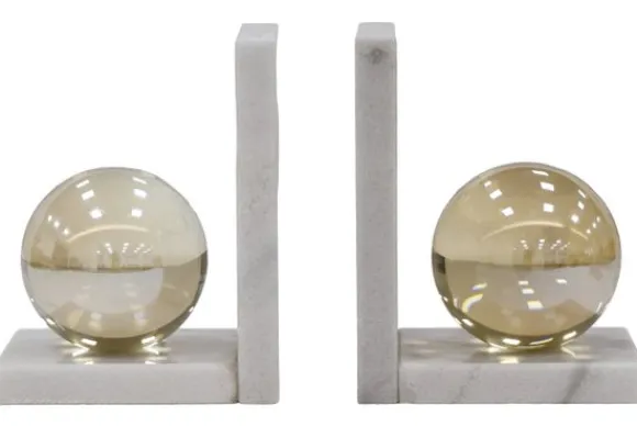 De boekenstandaard is gemaakt van marmer en kristal. De stevige marmeren basis geeft stabiliteit terwijl de kristallen bollen een decoratief accent toevoegen.