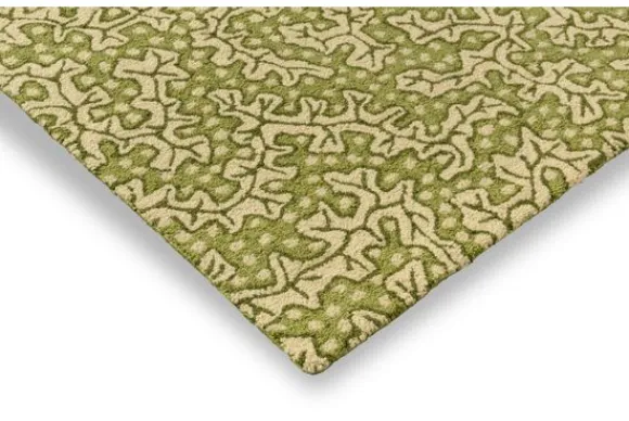 Buitenkleed SAN Truffle Olive Outdoor 446007 van het merk Brink & Campman is een echte sfeermaker voor binnen én buiten. Het design bestaat uit een speels doolhofachtig patroon in groen en beige, dat doet denken aan een bladerig bos of mos.