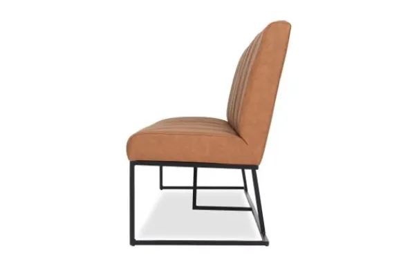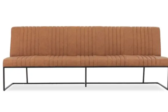 De Coret heeft een stevige hoge rug waar je comfortabel tegenaan kunt zitten en zo goede steun geeft aan jouw rug. De verticale stiksels in banen in de voorkant van de rugleuning geven deze bank een speels detail. Deze eetbank heeft een stevig metalen frame dat ook onder zitting doorloopt. Standaard komt dit frame in de kleur zwart, maar je kunt ook kiezen voor industrieel staal.