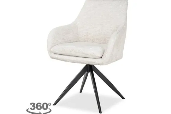 De stoel is 360 graden draaibaar en beschikt over een handig terugdraaisysteem, waardoor de zitting automatisch terugkeert naar de oorspronkelijke positie. Dit is niet alleen praktisch, maar voegt ook een elegant detail toe aan het design.