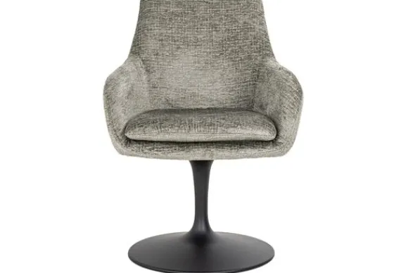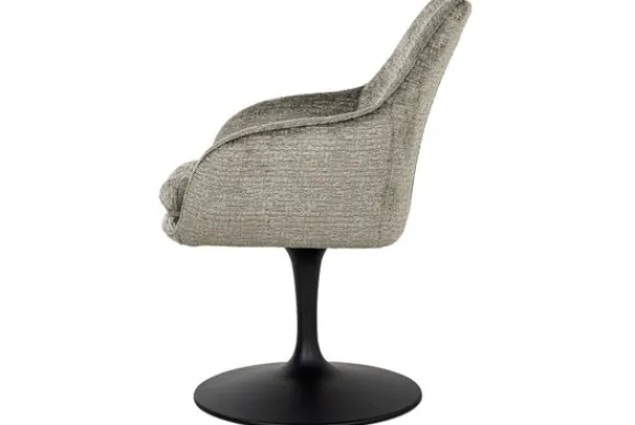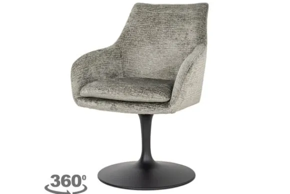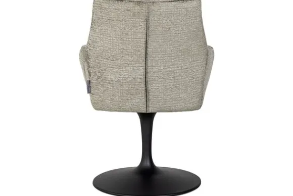 De stoel is 360 graden draaibaar. De stoel is voorzien van armleuningen, dit zorgt ervoor dat je comfortabel kunt zitten. De poot heeft een ronde voetplaat en is gemaakt van metaal in de kleur zwart.