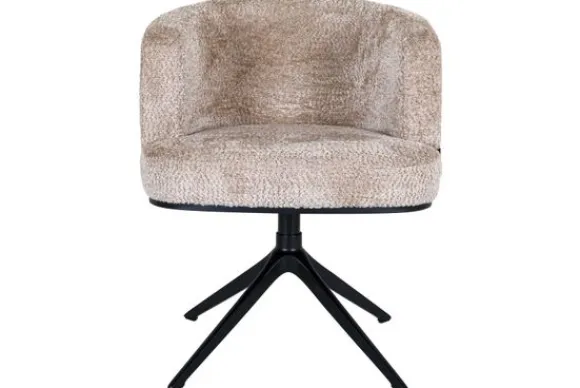 Eetkamerstoel Cheyenne 212573 Lovely Beige van het merk Richmond Interiors is gestoffeerd met Be Lovely 170 Beige. De fauteuil is 360 graden draaibaar. De rugleuning loopt rondom door in de armleuning, waardoor je heerlijk comfortabel kunt zitten. De stoel is voorzien van een zwart metalen spinpoot.
