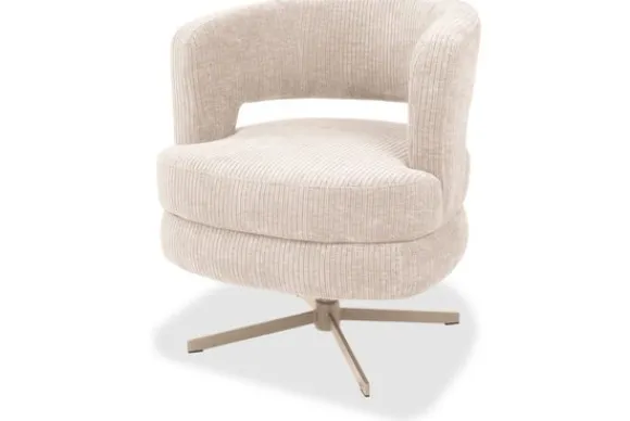 Eetkamerstoel Salute van het merk Opulenza is een luxe draaistoel met een ronde vorm en zachte zitting. De open rug en stevige armleuningen geven de stoel een luchtige en comfortabele uitstraling aan tafel.