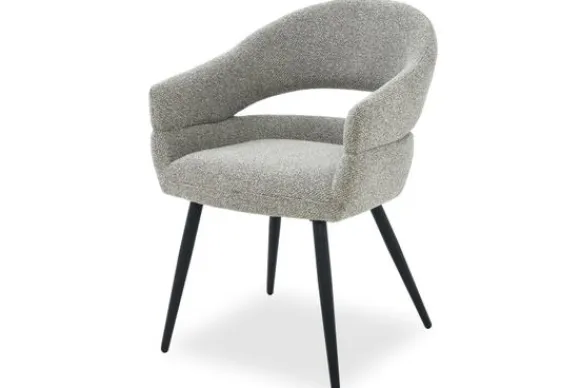 Eetkamerstoel Megan van het merk Livingfurn is een subtiele blikvanger met een tijdloos karakter. De grijze bekleding voelt zacht aan en heeft een verfijnde structuur die perfect past in interieurs waar rust en eenvoud centraal staan. De afgeronde rugleuning vloeit elegant over in de armleuningen en zorgt voor een omhullend zitcomfort.