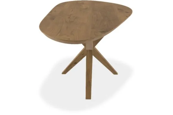 Eettafel Isaac van het merk De Houtmaatschappij heeft een slippervormig blad dat is uitgevoerd met een 2+2 cm opgedikte rand. Dit zorgt ervoor dat de poot netjes onder het blad valt en het geheel stevig is afgewerkt.