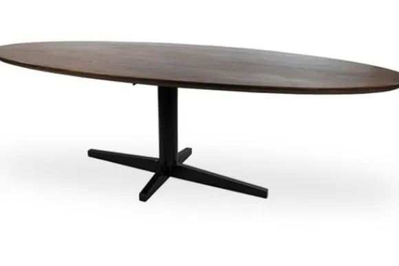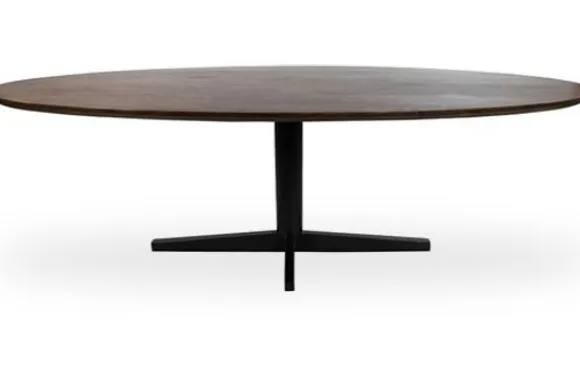 Eettafel Scorpio van het merk MySons straalt luxe en eenvoud uit. Het ovale blad is gemaakt van massief mangohout in een warme walnootkleur, waarbij de natuurlijke nerven de tafel een uniek karakter geven.