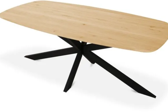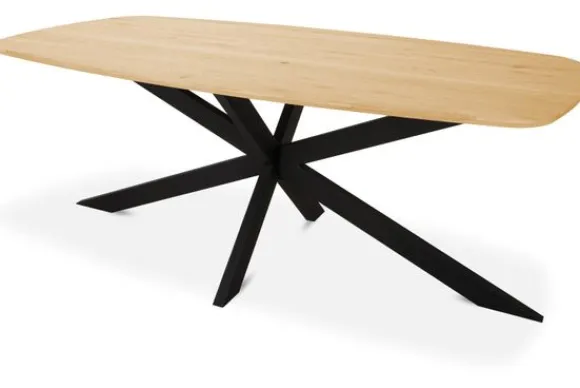 De Varese eettafel heeft een taps bladtype, wat de eettafel een elegante look geeft. Bij alle eettafels van Simble kun je zelf ook de tafelpoten kiezen zodat je de tafel naar jouw smaak kunt aanpassen! Deze tafel wordt standaard geleverd met poot 5, dit is een metalen kruispoot.