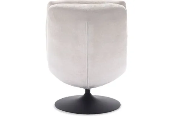 De zwarte, ronde voet zorgt voor een stoer contrast en maakt 360 graden draaien mogelijk. Dit maakt de fauteuil niet alleen praktisch, maar ook speels in gebruik.