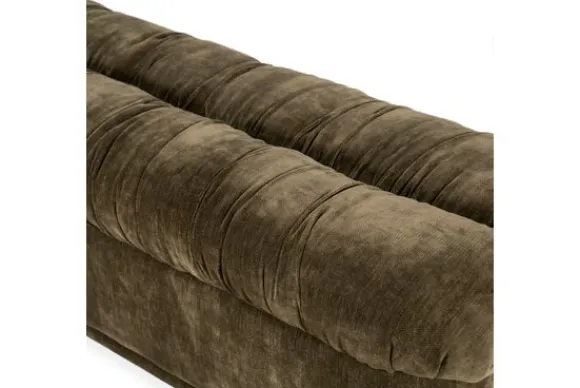 De royale zitting is afgewerkt met zachte plooien die zorgen voor een speels reliëf en een elegante dynamiek in het ontwerp. De polyester bekleding voelt aangenaam zacht aan en geeft de halbank een tijdloos en verfijnd karakter.