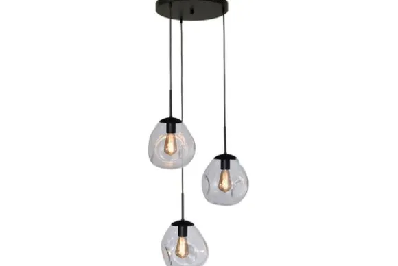 Hanglamp Lava 2762-05-35-3-00-61 van het merk Masterlight is een unieke lamp met een chique uitstraling. Het prachtige glas is mond geblazen in Italië. De basis is van metaal en uitgevoerd in de kleur zwart. De glazen lampenkappen hebben een diameter van 24 centimeter en zijn 23 centimeter hoog. Door de vorm en kwaliteit van het glas is deze hanglamp een echte eyecatcher! Het gedeukte glas geeft de lamp een speelse look die goed te combineren is in verschillende interieurs. Hang de lamp boven je eettafel of in de gang. De lamp heeft een E27 fitting en wordt zonder lichtbron geleverd.