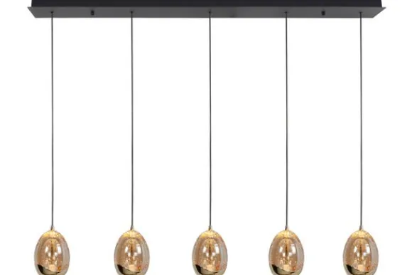Hanglamp Golden Egg van het merk Highlight heeft een luxe uitstraling door de gouden details. Deze lamp is verstelbaar in lengte. De maximale lengte is 160 cm. De lampen kunnen op verschillende hoogte gehangen worden, waardoor je een speels effect creeërt. De Golden Egg serie bestaat uit een hanglamp, een tafellamp, een wandlamp en een vloerlamp. Deze zijn er zowel in amberglas als in bleekglas. Maak je interieur helemaal af met de complete serie.