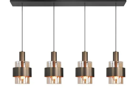 Hanglamp Marrone van het merk Highlight is een eigentijds designstuk met vier elementen dat perfect past in ieder modern interieur. Deze hanglamp vormt een perfecte keuze voor boven een eettafel, in een hal of als stijlvol accent in een woonkamer. De combinatie van glas en metaal zorgt voor een intrigerend contrast tussen lichtheid en stevigheid, terwijl de bronzen tint warmte toevoegt aan elke ruimte. De lamp heeft een E27 fitting en is dimbaar door middel van een externe dimmer in combinatie met een dimbare lichtbron.