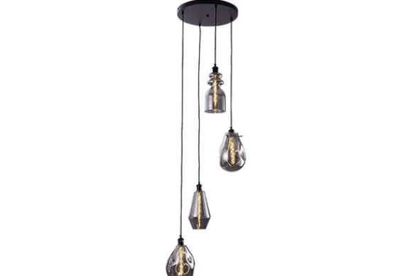 Hanglamp Cayden rond van het merk Toms Luxury Lights is een 4-lichts zwarte plafondlamp. Door het staal in combinatie met smoked glas krijgt de lamp een luxueuze uitstraling. De lichtbronnen hangen in verschillende hoogtes en creëren daardoor een speels effect. Het glas zorgt voor een bijzondere lichtinval dat de ruimte laat stralen. Voor het mooiste effect kun je het beste een spiraal lichtbron in de lamp plaatsen. De lamp is voorzien van een E27 (grote) fitting. De plafondlamp is dimbaar middels een externe dimmer en een dimbare lichtbron. De lamp wordt inclusief lichtbron geleverd.