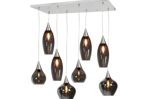 Hanglamp Cambio van het merk Highlight heeft acht lampen met glazen lampenkappen van verschillende formaten. Deze acht lampen zijn verstelbaar in lengte. De maximale lengte is 190 cm. De lampen kunnen ook op verschillende hoogtes gehangen worden, wat een speels effect creeërt. Deze lamp is uitermate geschikt voor bijvoorbeeld boven de eetkamertafel, het kookeiland en een vide. De cambio serie bestaat uit plafondlampen, tafellampen, wandlampen en vloerlampen. Deze zijn er zowel in zwart als in het zilver. Maak je interieur helemaal af met de complete serie. De lampen zijn bevestigd aan een rechthoekige plafondplaat gemaakt van nikkel. Deze plafondplaat heeft een afmeting van 94×40 cm.