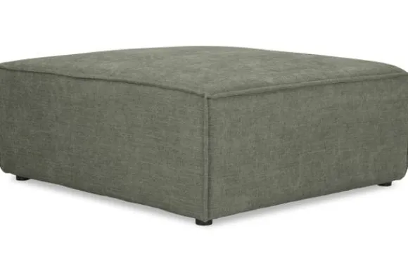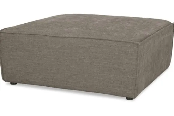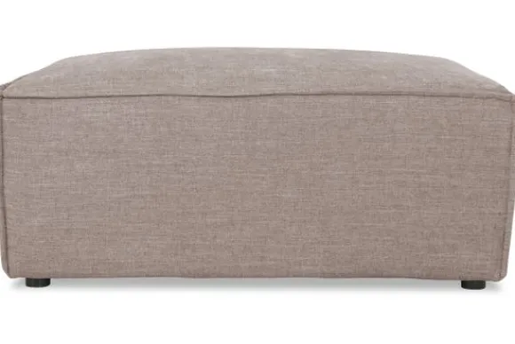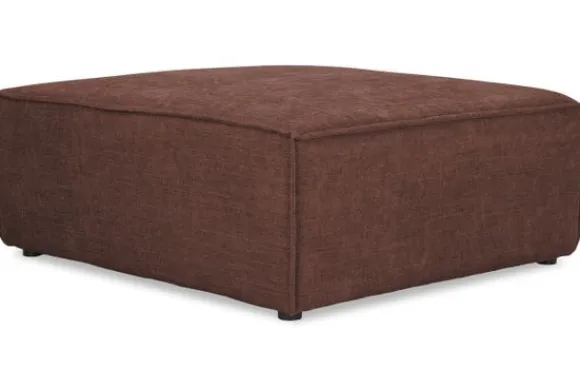 De hocker is verkrijgbaar in verschillende maten en biedt keuze uit verschillende materialen, waaronder leder en stoffen als velvet en bouclé.