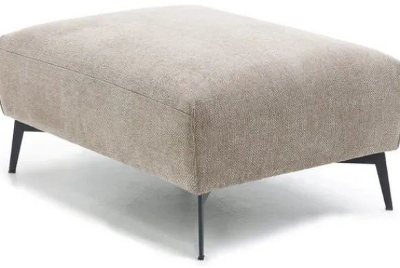Hocker Romi II van het merk Gabanna is beschikbaar in alle kleuren en in verschillende materiaalsoorten zoals stof, velvet en rundleder. Je kunt kiezen uit diverse afmetingen en pootmogelijkheden. De Romi heeft een strakke uitstaling door het vaste kussen. Het kussen is gevuld met luxe rendementschuim, maar er kan ook voor koudschuim gekozen worden. Koudschuim wordt ook wel High Resilience genoemd. High Resilience betekent “hoge veerkracht”, koudschuim is dus een schuim met hoge veerkracht en staat ook bekend om zijn lange levensduur. Het kussen worden ondersteund door hoogwaardige nosagvering en de poef heeft een erg sterk, houten frame. De naden zijn gevouwen en zorgen voor een leuk detail.