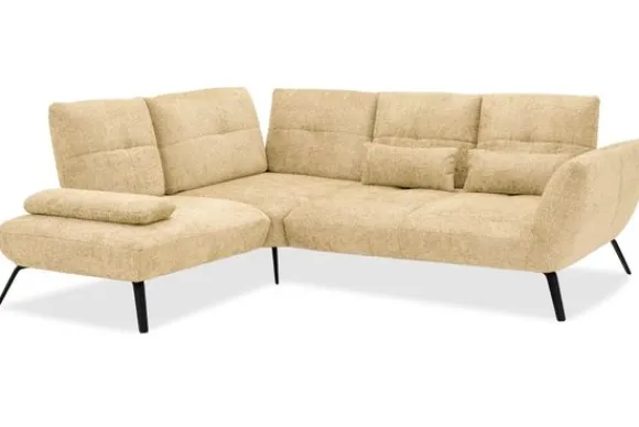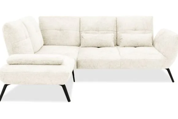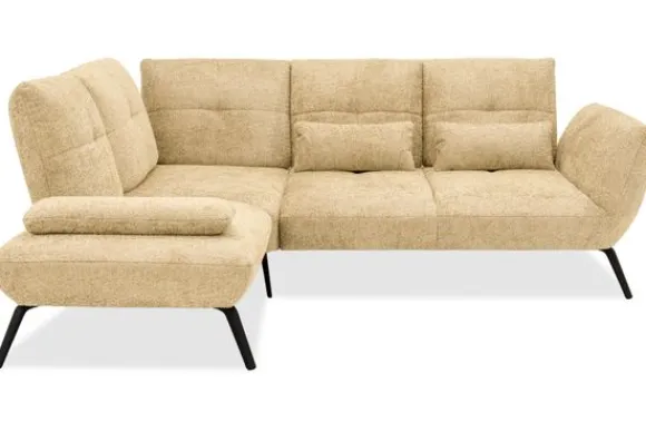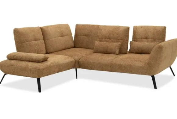 Deze hoekbank is verkrijgbaar in verschillende materialen, zoals kunstleder en stoffen als velvet en bouclé. Elk materiaal is leverbaar in diverse kleuren, zodat je de bank helemaal naar jouw smaak kunt samenstellen. Ook kun je kiezen uit twee verschillende pootkleuren voor een persoonlijke uitstraling.