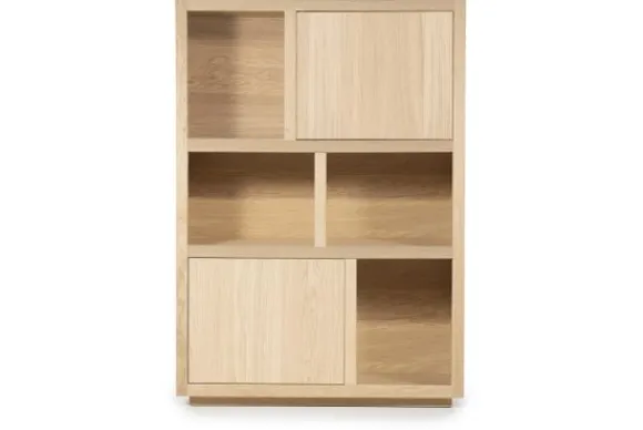 Het kabinet heeft open vakken in diverse formaten en is voorzien van twee deuren. Deze indeling biedt ruimte voor servies, woonaccessoires of boeken. De combinatie van open en gesloten vakken zorgt voor overzicht en praktisch gebruik. Het kabinet maakt deel uit van de Helsinki met bijpassende meubels.