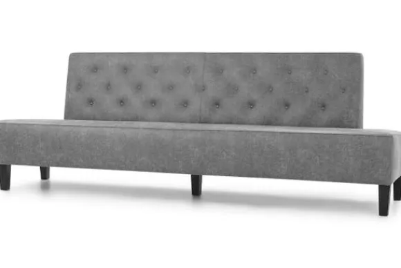 Deze eetkamerbank komt met een dichte naad, houten pootjes in de kleur zwart, een gecapitonneerde rugleuning en dichte voor- en achterkant.