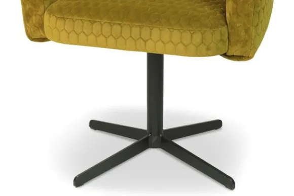 De eetkamerstoel wordt standaard geleverd met een zwart metalen draaibare spinpoot. Met de spinpoot is de stoel 360 graden te draaien.
