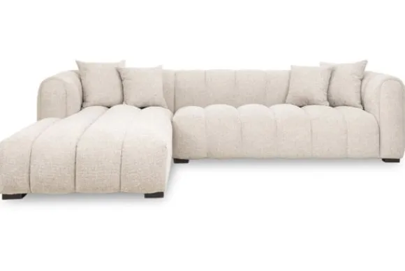 Loungebank Novaro 215119 van het merk Richmond Interiors in de opstelling longchair + 3 uitgevoerd in de stof Milan 120 Natural en de afmetingen B305 x D190 x H71. De verticaal gestikte banen geven bank Novaro een moderne uitstraling.