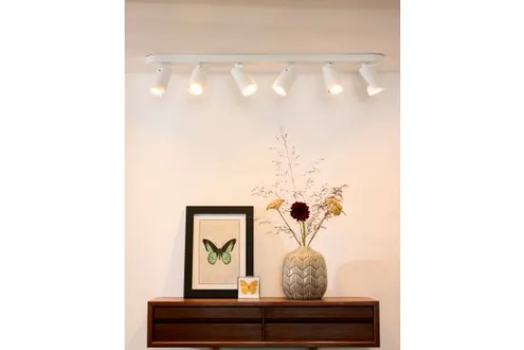 Plafondspot Xyrus van het merk Lucide is een combinatie van led-spots die erg geliefd is in slaapkamers, maar ook woonkamer en inkomhallen verwelkomen Xyrus met plezier. Je stuurt deze dimbare spots zelf aan: de lichtbronnen zijn 360 graden draai en kantelbaar. De zes GU10-fittings zijn voorzien van DIM TO WARM led-lampen. Heb je zin in een romantische avond? Je sluit deze armatuur eenvoudig en snel aan op een externe dimmer.