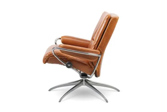 Relaxfauteuil Tokyo LowBack van het merk Stressless is verkrijgbaar in meer dan 150 kleuren. Tevens is de fauteuil leverbaar in stof en rundleder. Je kunt bij deze fauteuil kiezen uit diverse maten zoals Small, Medium en Large. Deze fauteuil heeft een Plus en Glide Systeem: Aan beide zijden van de fauteuil zit een knop waarmee je de weerstand van de stoel kan aanpassen naar eigen behoefte. Door de knoppen in tegengestelde richting te draaien stel je jouw ideale relaxpositie samen. Op die manier krijgt de nek en de onderrug goede ondersteuning. Door de rugleuning naar voren te buigen activeer je de slaapfunctie. Op het moment dan je weer rechtop komt stelt de stoel zichzelf weer bij naar de normale stand.