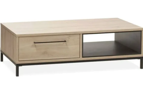 De salontafel is voorzien van één lade en een open vak, ideaal voor extra opbergruimte. Alberta – Bridge maakt deel uit van een complete met o.a. tv-meubels, eettafels en dressoirs.