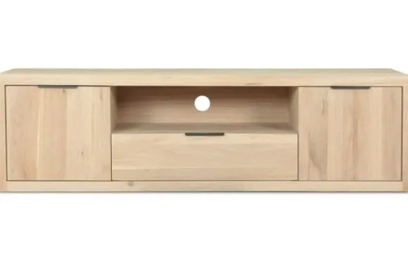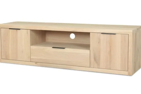 Tv-meubel Established van het merk Van Dijk Furniture is beschikbaar in verschillende kleuren 100% massief eikenhout. Eikenhout leeft en geeft hierdoor karakter aan jouw meubelstuk. Daarnaast is elk stuk uniek door de nerven en noesten. Dit tv-meubel heeft twee deuren met hierachter een plank, één lade en één open vak.