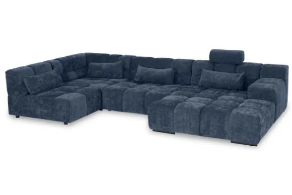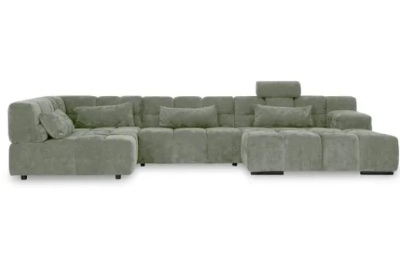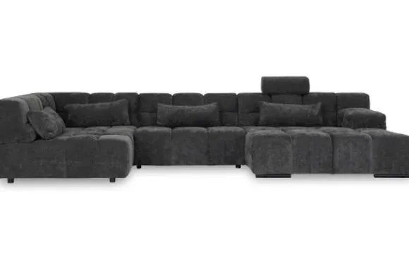 Dit bankstel is samen te stellen in vele afmetingen en verschillende opstellingen, of kies uit een van de standaard opstellingen. Ook kan je kiezen uit mat zwarte of chroom pootjes en zijn er bijpassende hoofdsteunen, sier- en lendekussens en poefjes beschikbaar. Deze worden uitgevoerd in dezelfde stof als de bank.