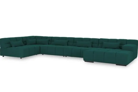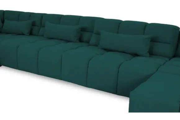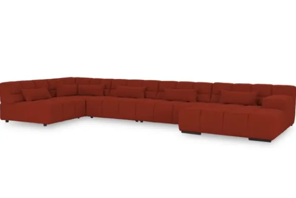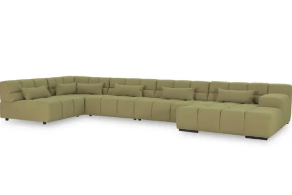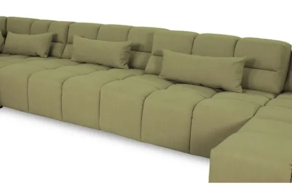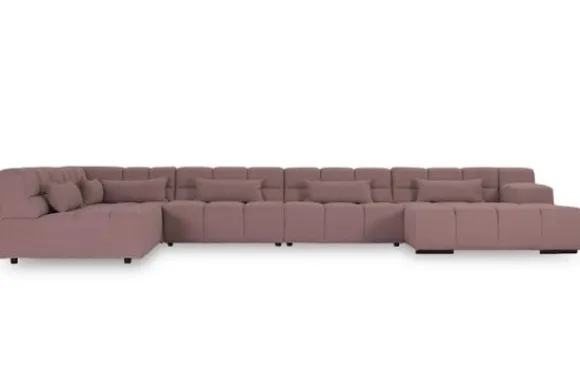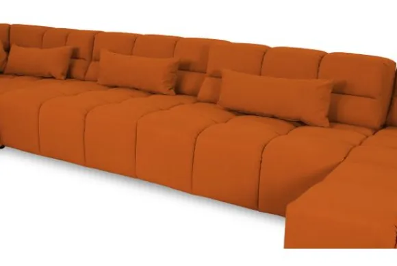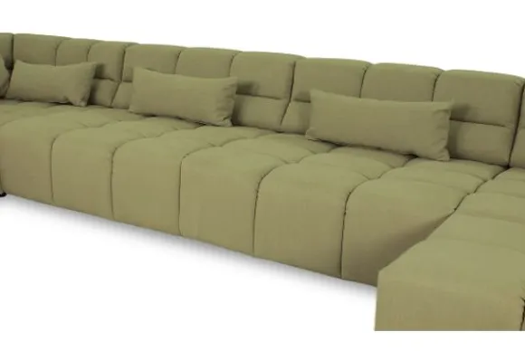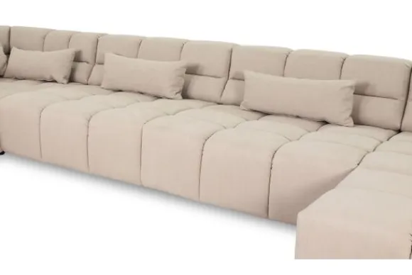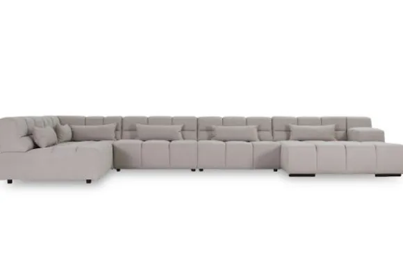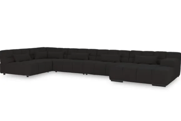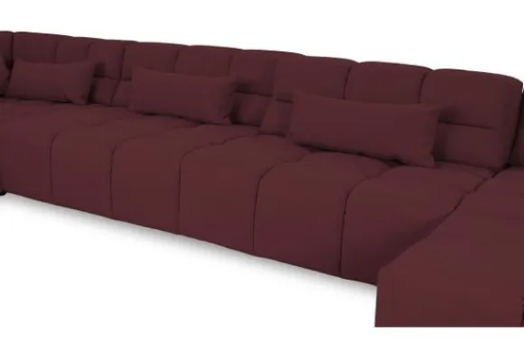 Dit bankstel is samen te stellen in vele afmetingen en verschillende opstellingen, of kies uit een van de standaard opstellingen. Ook kan je kiezen uit mat zwarte of chroom pootjes en zijn er bijpassende hoofdsteunen, sier- en lendekussens en poefjes beschikbaar. Deze worden uitgevoerd in dezelfde stof als de bank.