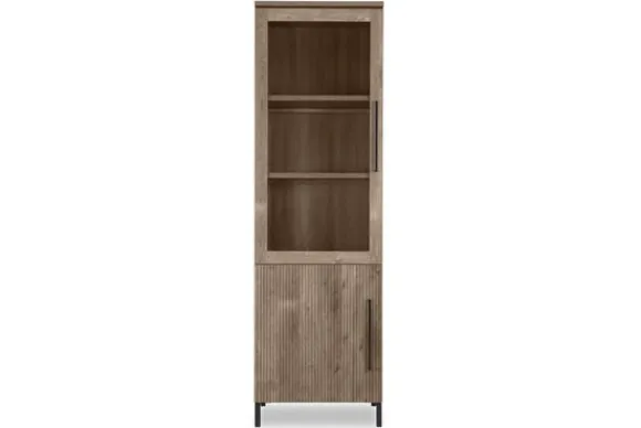 De Napoli vitrinekast is voorzien van één glazen deur met daarachter drie vakken en één gesloten deur met daarachter een legplank. Deze indeling biedt ruimte om servies of decoratie te tonen en andere spullen netjes op te bergen. De deuren zijn afgewerkt met smalle zwart metalen handgrepen en uitgerust met softclose dempers voor een stille sluiting.