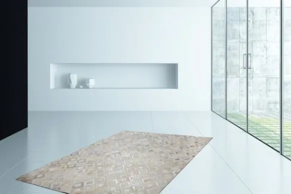 Vloerkleed Spark 110 Grijs Zilver van het merk Divendo is verkrijgbaar in verschillende afmetingen, designs en kleuren. Het prachtige lederen tapijt met zilverkleurig metaalfolie rondt elke elegante inrichtingsstijl vakkundig af. Het hoogwaardige, elegante vloerkleed van 100% leer geeft een luxeus tintje aan de omgeving en zorgt voor een heel bijzondere flair. Het kleed is met de hand gemaakt, dus elk leren tapijt is uniek. Het gebruik van fijne natuurlijke materialen en hoogwaardige afwerking zorgen voor een dynamische uitstraling en maken elk tapijt uniek, omdat natuurlijke producten tot 30% in vorm, kleur en patroon kunnen variëren.