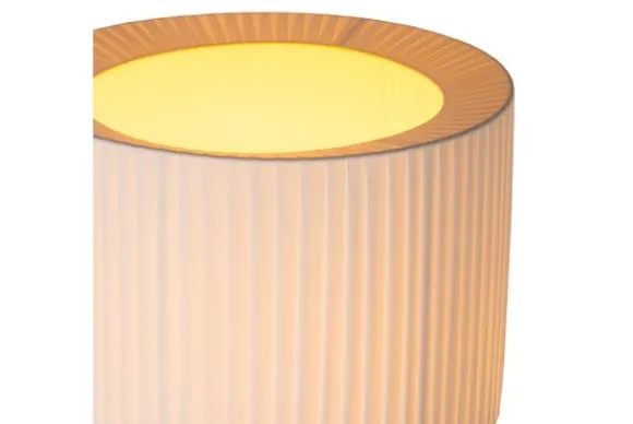 Vloerlamp Fold van het merk Lucide is een stijlvolle lamp met een serene uitstraling. De brede, geplooide stoffen kap zorgt voor een zachte lichtverspreiding en creëert een warme, rustgevende sfeer in de ruimte. Het slanke zwarte frame vormt een elegant contrast met het lichte textiel.