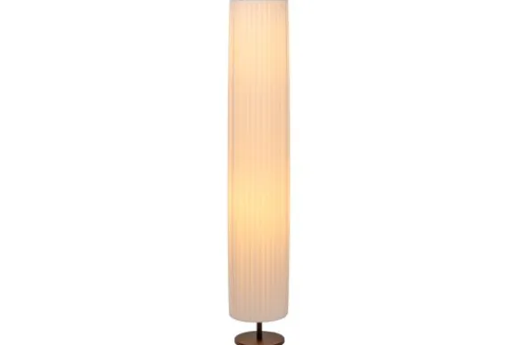 Vloerlamp Fold 21739/12/31 van het merk Lucide is een elegante lamp met een zachte, moderne uitstraling. De hoge cilindervormige kap van geplooid textiel verspreidt het licht op een sfeervolle manier, waardoor de ruimte een warme en uitnodigende gloed krijgt.