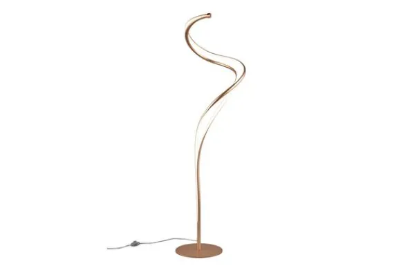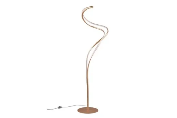 Vloerlamp Nala van het merk Trio Lighting bestaat uit twee doorlopende gouden verlichtingselementen. Naast het design biedt de lamp praktische functies. De armatuur kan door de geïntegreerde dimmer traploos gedimd worden. De lichtkleur is op verschillende niveaus instelbaar en kan de laatste instelling opslaan en gebruiken wanneer de lamp opnieuw ingeschakeld wordt. De combinatie van design en de kleur goud geeft de vloerlamp een heel bijzonder tintje. Bovendien beschikt de armatuur over moderne LED-technologie, die zich kenmerkt door een hoge lichtkwaliteit en energie-efficiëntie.