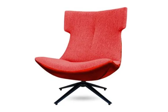 Draaifauteuil Lowie van het merk Bing is verkrijgbaar in alle kleuren en in diverse materialen zoals stof, velvet en rundleder. De fauteuil staat op een zwarte metalen stervoet waardoor de stoel 360 graden draaibaar is. Het unieke design van de hoge rugleuning geeft de fauteuil een moderne uitstraling.