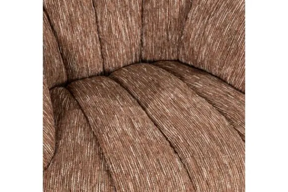 De ronde, organische vormen en de zachte verticale plooien in de bekleding geven de fauteuil een chique en uitnodigende uitstraling. Uitgevoerd in een polyester stof voelt de zitting heerlijk zacht aan en voegt hij een warme, rustgevende sfeer toe aan het interieur.