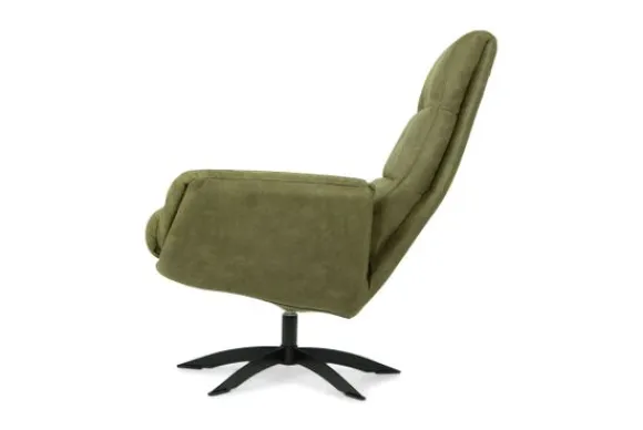 Draaistoel Dazzle van het merk Danish Design is verkrijgbaar in alle kleuren en in materiaalsoorten zoals stof, kunstleder en rundleder. De fauteuil is voorzien van een zwart metalen poot en armleuningen. In de voorkant van de rugleuning zitten horizontale stiksels.