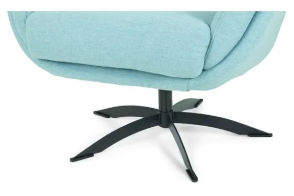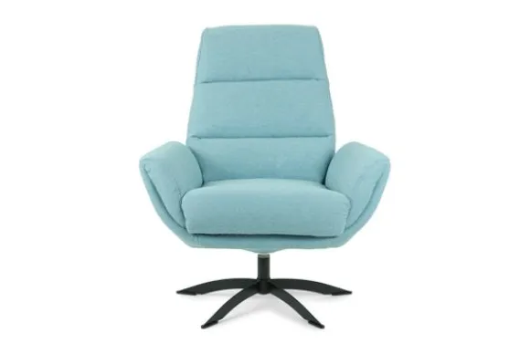 Draaistoel Dazzle van het merk Danish Design is verkrijgbaar in alle kleuren en in materiaalsoorten zoals stof, kunstleder en rundleder. De fauteuil is voorzien van een zwart metalen poot en armleuningen. In de voorkant van de rugleuning zitten horizontale stiksels.