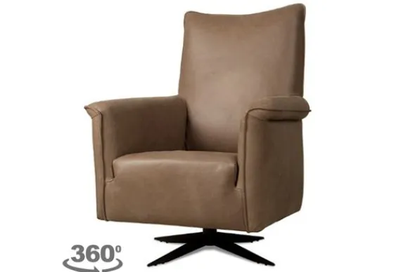 Deze fauteuil wordt standaard uitgevoerd met een zwarte draaipoot en een hoge rug.