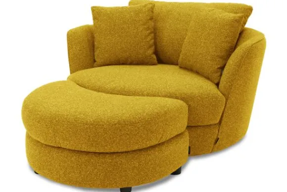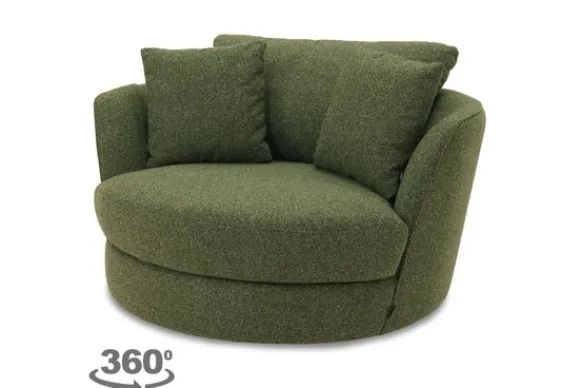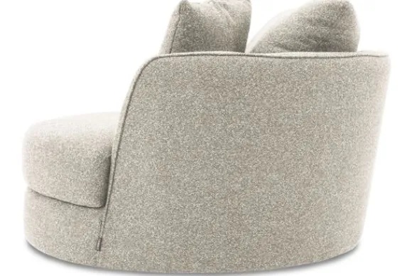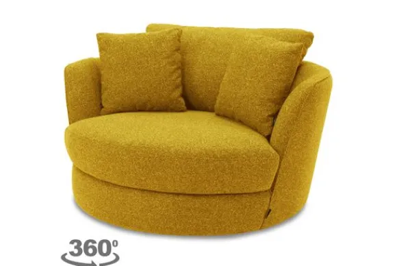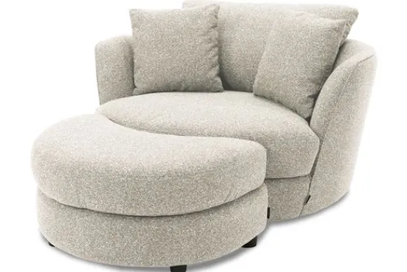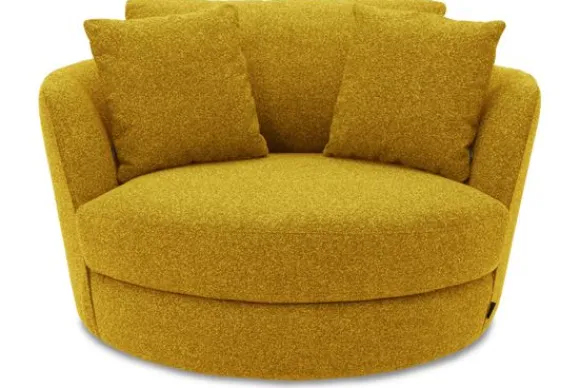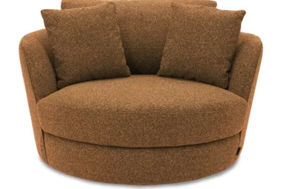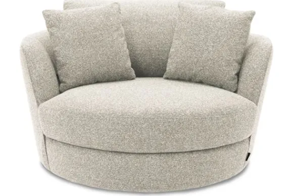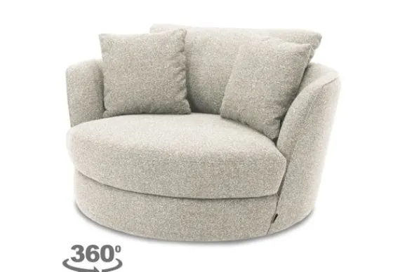 Draaifauteuil Estelle van het merk Domicil is een comfortabele fauteuil met een moderne uitstraling. De ronde vorm en zachte belijning zorgen voor een fijne zit en een uitnodigend geheel. Deze draaifauteuil past moeiteloos in een modern interieur en sluit ook mooi aan bij een landelijk of klassiek woonbeeld. De stoel komt inclusief het vastzittende rugkussen en twee losse sierkussens.