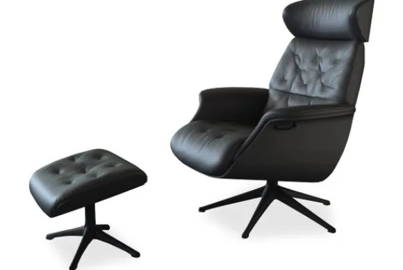 Je kunt kiezen uit diverse pootmogelijkheden, zie hiervoor het tabblad ”Stel jouw fauteuil samen”. Bij deze fauteuil wordt de schaal doorgestoffeerd. De poot en handgreep komen automatisch in dezelfde kleur. De hoofdsteun kan uitgeschoven worden en met een klik-systeem weer makkelijk terug in positie worden gezet. Een hocker is optioneel. Neem voor de kleuren en bekleding contact op met onze of kom langs in onze showroom in Ter Aar.