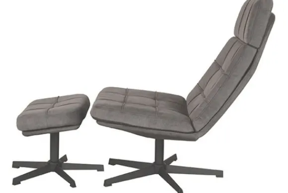 Naast deze Antraciet Cosmo variant is de Alvar ook verkrijgbaar in Naturel Touch en Taupe Micro Suede, of als draaifauteuil zonder hocker.