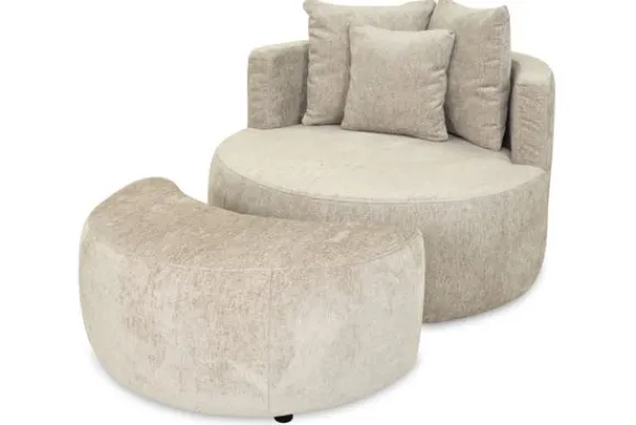 Draaifauteuil Sien van het merk Givenchie is een comfortabele fauteuil met een ronde vorm. De zachte belijning en uitnodigende zit maken deze draaifauteuil geschikt voor verschillende interieurs. De fauteuil is ontworpen om ontspannen te zitten en vormt een fijne plek om tot rust te komen in de woonkamer.