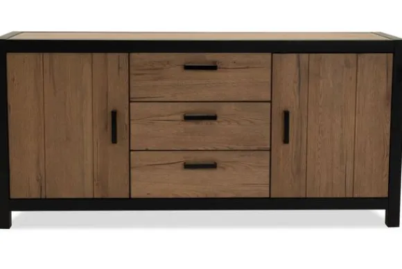 Dressoir Roble van het merk Eikenrijk is een krachtig meubel met een warme uitstraling. Het strakke lijnenspel en de donkere accenten geven een stoer karakter, terwijl de houtnerf voor een uitnodigende sfeer zorgt. Mooi in een industrieel of modern interieur.