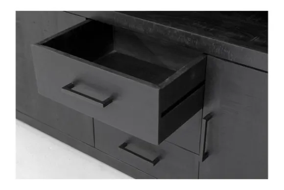 Dressoir Jaxx is uitgevoerd in mangohout in de kleur zwart. Dit is een duurzame houtsoort met een fijne nerfstructuur, waarbij elk meubel een eigen uitstraling heeft. Het hout is geschikt voor dagelijks gebruik en biedt een stevige basis.