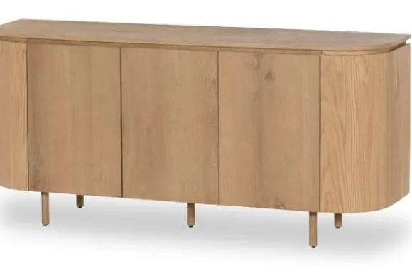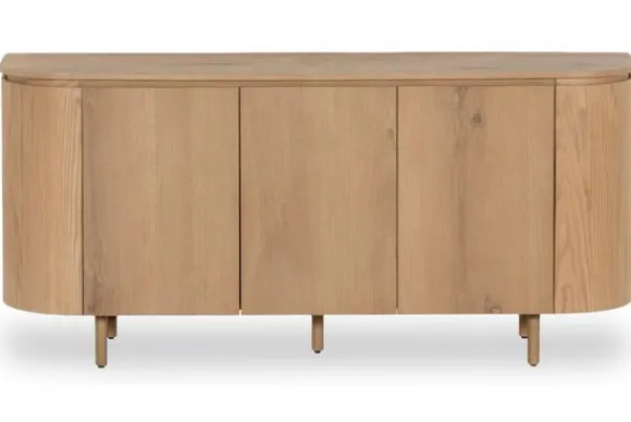 Dressoir Tobago van het merk Livingfurn brengt met zijn naturel houttint een frisse, kalme energie in huis. Het afgeronde ontwerp en de subtiel geïntegreerde deuren zorgen voor een vloeiende vormgeving die rust en verfijning uitstraalt. De natuurlijke houtstructuur in het lichte MDF fineer voegt een zachte, levendige textuur toe die de puurheid van het materiaal benadrukt.